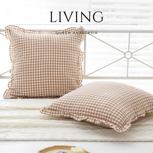/ 2 Pack Taupe Plaid Ruffle Euro Pillow Shams