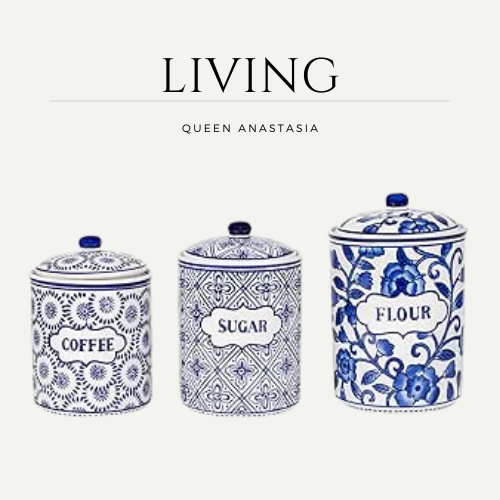 / Blue White Patterned Ceramic 3 Pc Canister Set