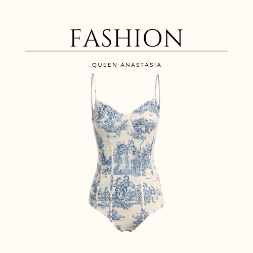 / CIDER Women’s Santorini Beach Vacation Toile de Jouy Bodysuit