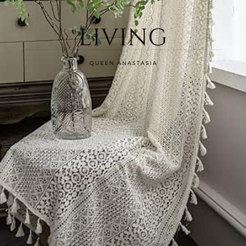 / Cotton Crochet Curtains Lace Curtains 72 Inches 2 Panel