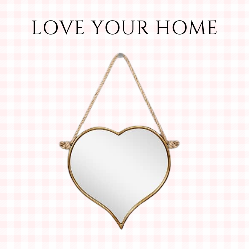 Heart Wall Mirror 17 Inch Heart Shaped Gold Metal with Hanging Rope for Home Decor