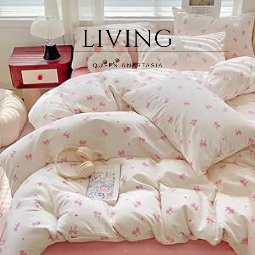 / Pink Bow Duvet Cover Queen Size Cute Heart Bows Printed