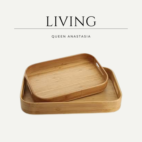 / Set of 2 Bamboo Serving Tray, Solid Wood