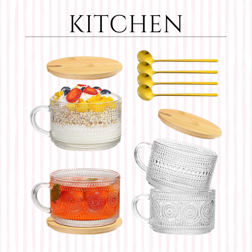 / Vintage Coffee Mugs Set of 4: Glass Coffee Cups with Bamboo Lids and Spoons