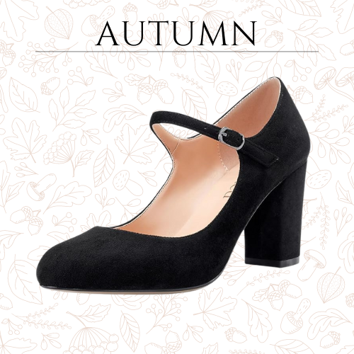 / Women Chunky Heel Pumps Mary Jane High Heels Round-Toe Shoes Dinner Wedding Pump 3Inch Block Heels