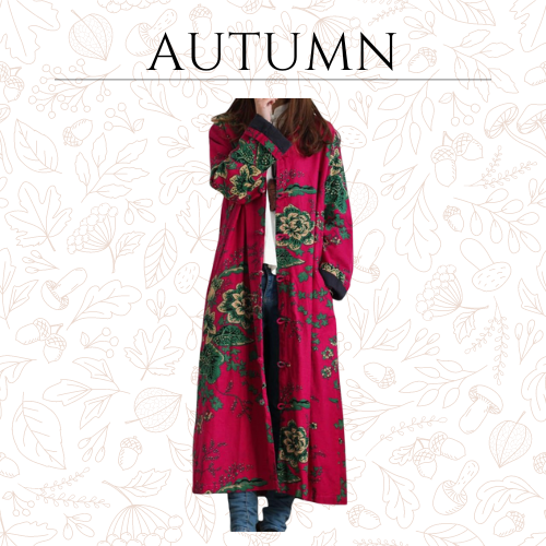/ Women Trench Coat Floral Print Long Jacket with Pockets