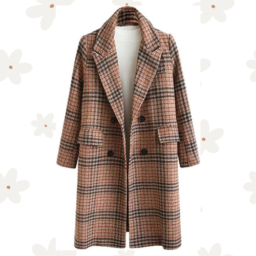 / Women’s Winter Oversize Lapel Collar Woolen Plaid Double Breasted Long Peacoat Jacket