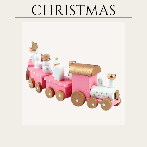 / Wooden Train Christmas, Pink Christmas Train for Holiday Decoration Desktop Ornaments, Xmas for Kids Toddles,